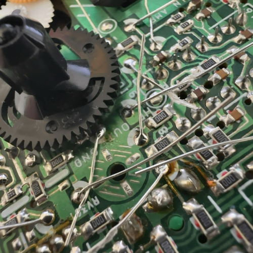 どうしても歯車をはずさないと効果できないところはあきらめて表側から元々のコンデンサーの足につなぎました。