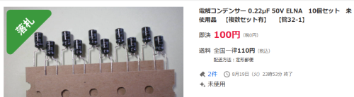 50V1μF未満の電解コンデンサーの入手性がかなり厳しいのですが、今回はヤフオクでこちらのものを調達してみました。