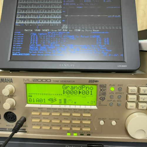 XG音源もとてもよい音源なのですが、GS音源と比べると出回っている音楽データが少なかったこともあり、MU80を使っていた知人もいたのですが個人的にはあまり触れることなく時が流れました。